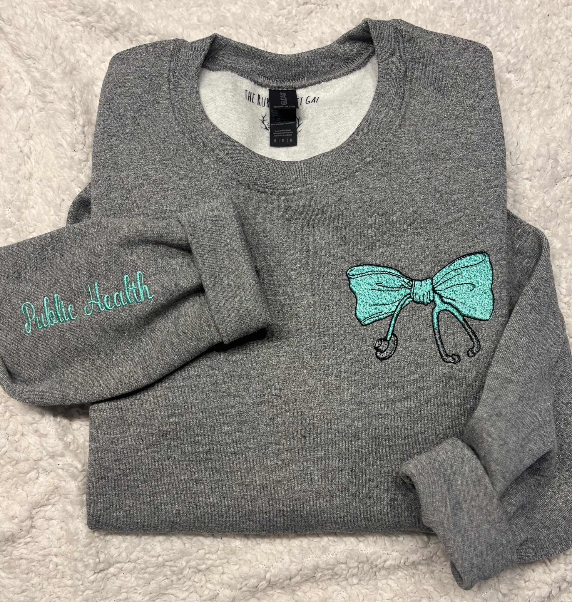 *example photo is Heather grey with seafoam thread