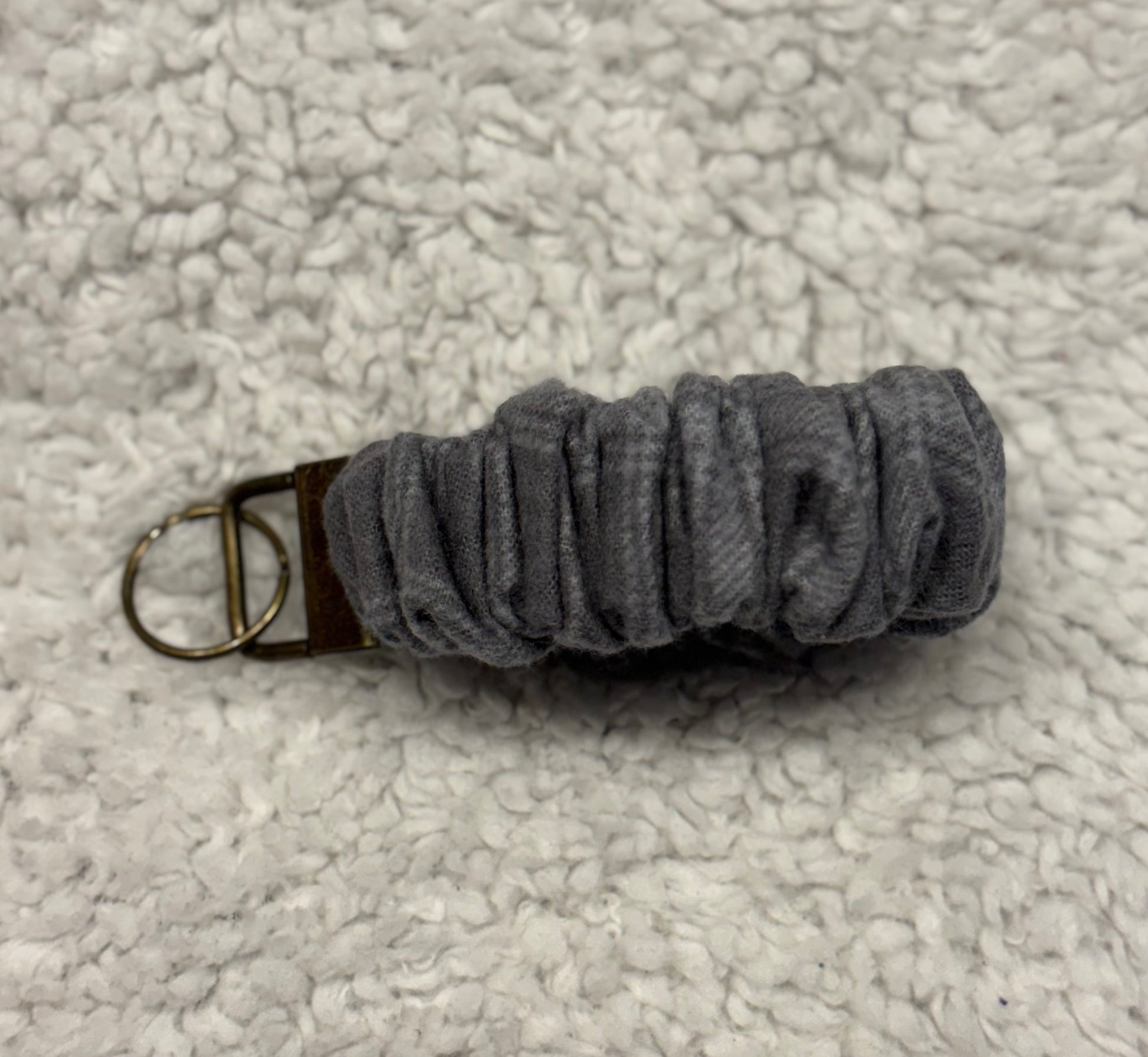 Grey Plaid Flannel Scrunchie Key Wristlet